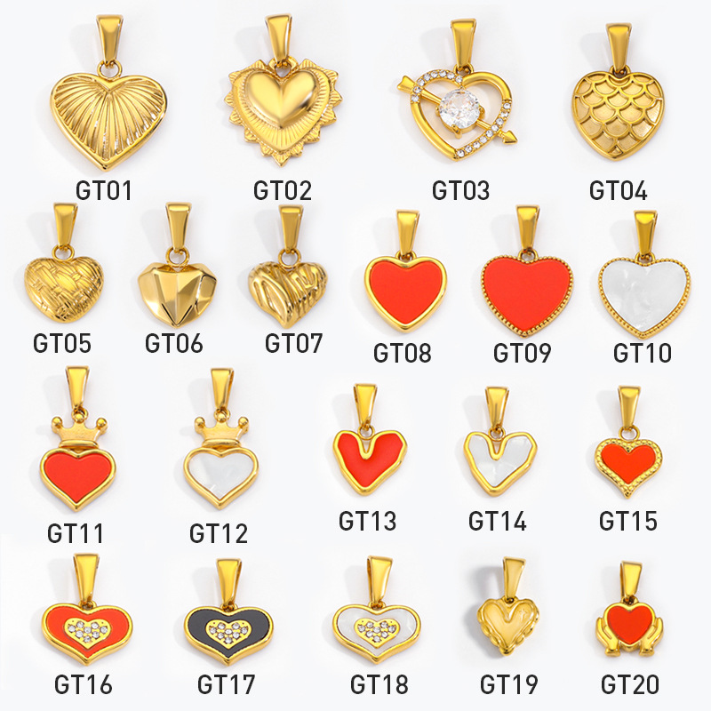 This heart shaped stainless steel pendant is based on stainless steel with a gold plated surface. Diamonds are inlaid on the edge of the heart shaped pendant, and the center is made of mother of pearl. Combining luxurious diamonds, warm mother of pearl and metal texture, the design is exquisite and romantic, and it is a jewelry that combines fashion sense and emotional meaning.