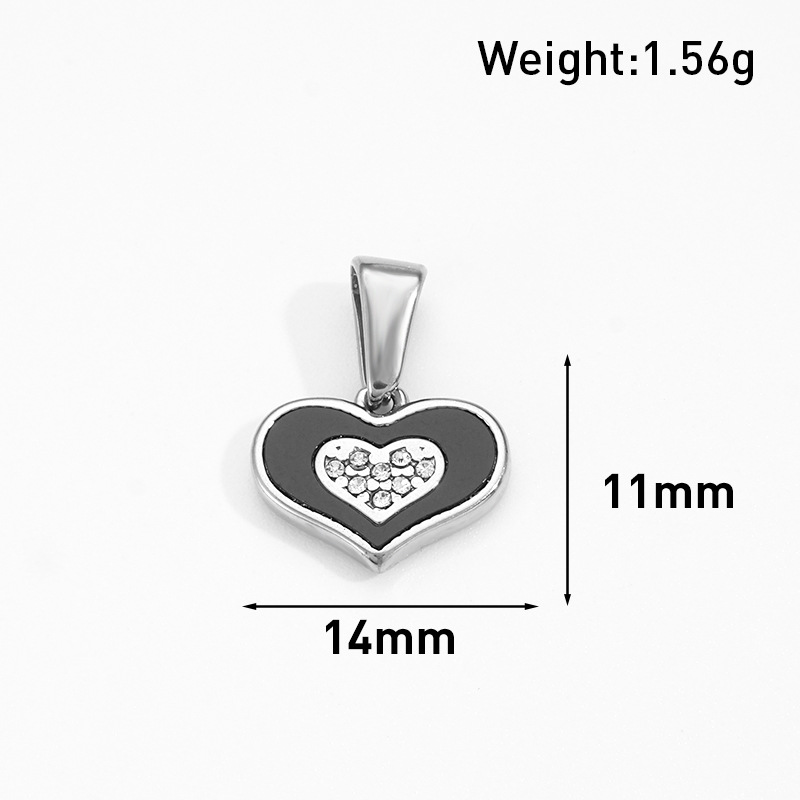 This heart shaped stainless steel pendant is based on stainless steel with a gold plated surface. Diamonds are inlaid on the edge of the heart shaped pendant, and the center is made of mother of pearl. Combining luxurious diamonds, warm mother of pearl and metal texture, the design is exquisite and romantic, and it is a jewelry that combines fashion sense and emotional meaning.