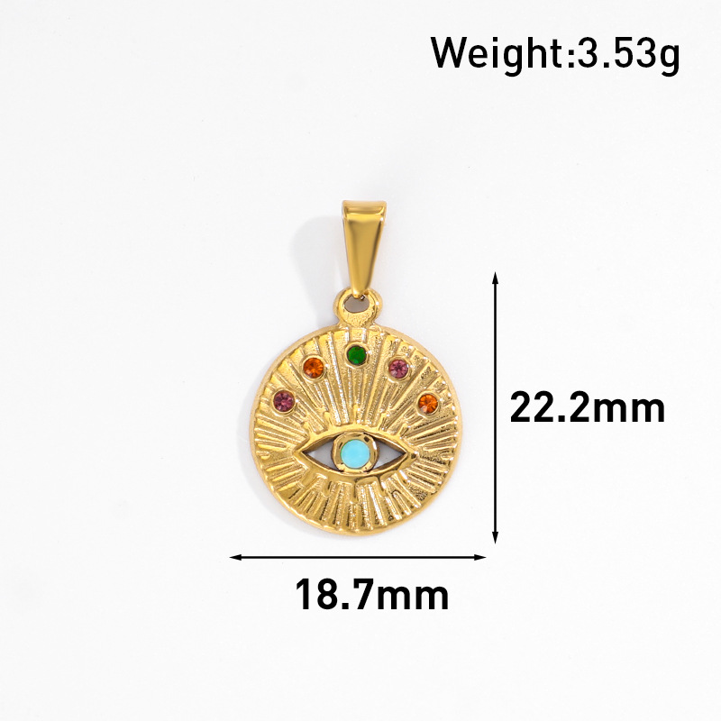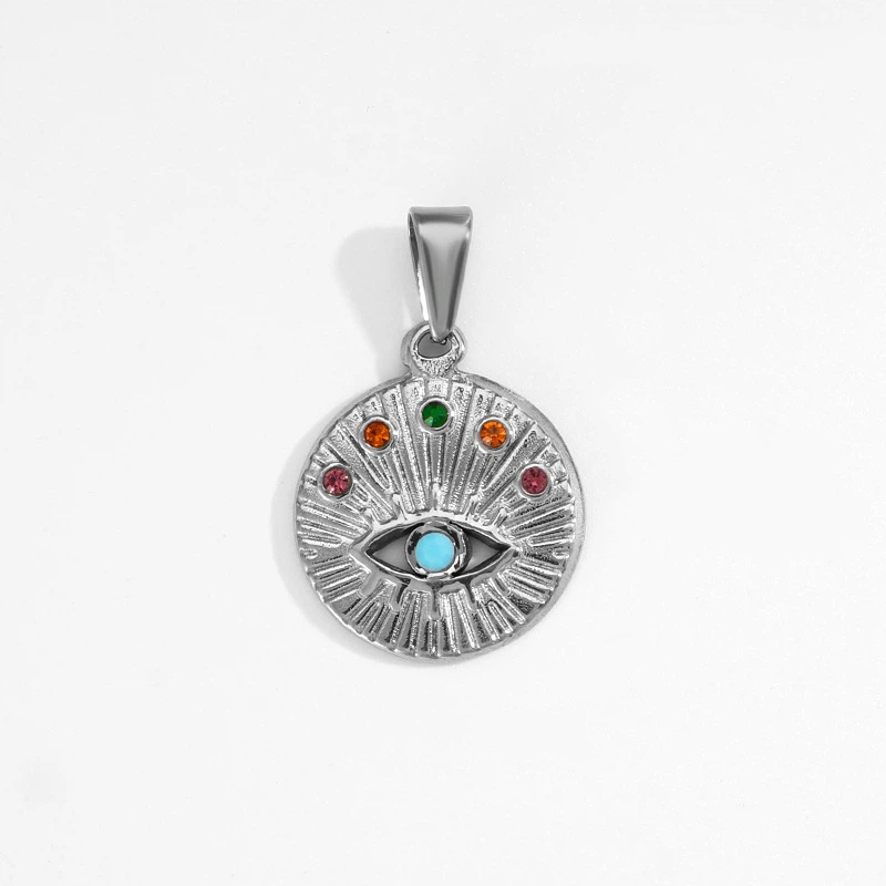 Read MoreThis is a stainless steel pendant with the evil eye pattern. The evil eye pattern is engraved on the surface of the pendant and is surrounded by colorful gemstones. Made of stainless steel, it is corrosion-resistant and not easy to deform.