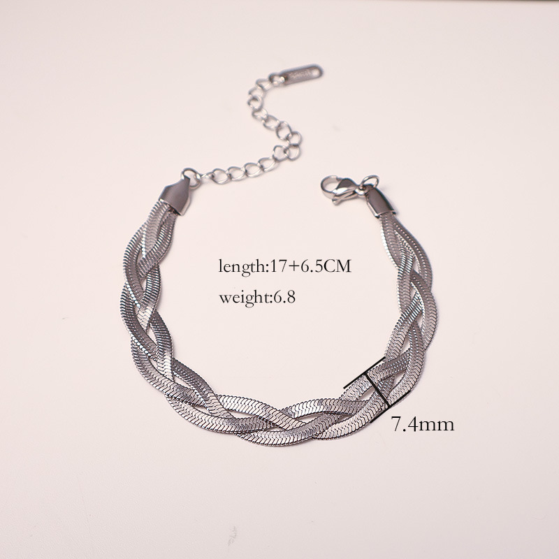 Craftsmanship: Made using precision weaving and stamping techniques, combining multiple blade-shaped links into a twisted structure. Finished with fine polishing and high-quality electroplating, ensuring smooth edges, flexible movement, and long-lasting shine without sharp corners.