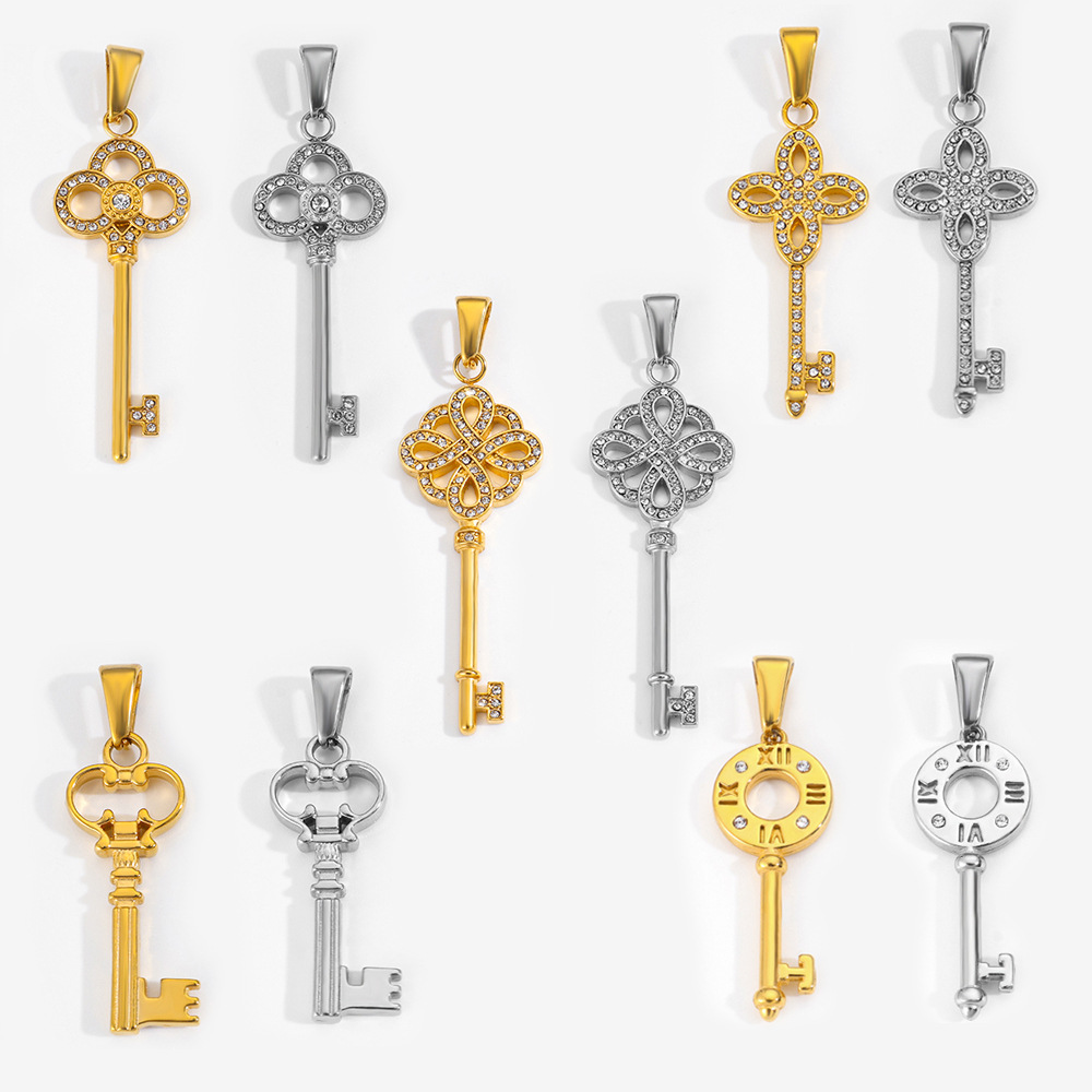 This clover-inspired key pendant combines symbolic elegance with a luxurious crystal-inlaid design. The four-petal motif represents luck and opportunity, while the key shape conveys access, success, and positive energy.
