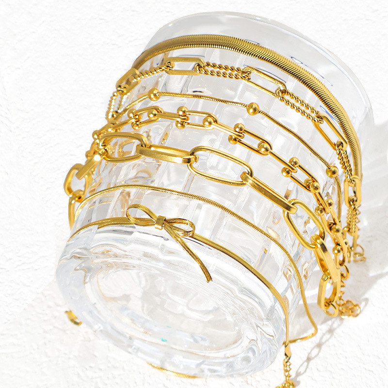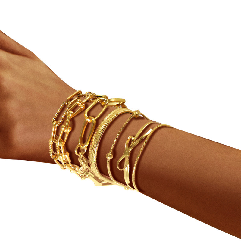 Product Name: Stainless Steel Layered Paperclip Chain Oval Link Bracelet Wholesale
