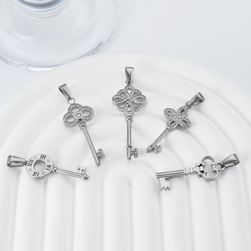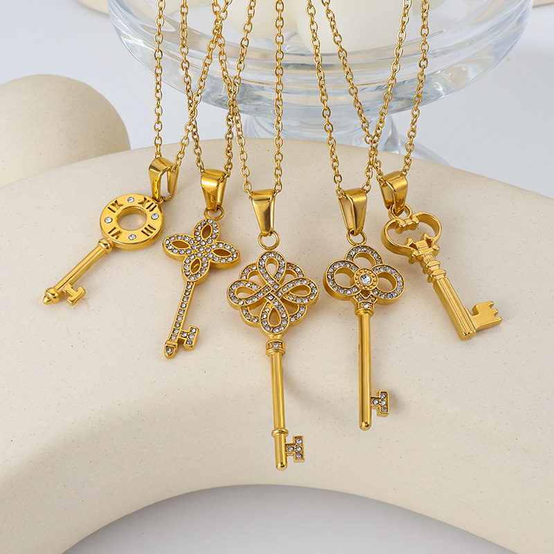 Product Name: Stainless Steel Women's Jewelry Manufacturer Crystal Annular Key Necklace Pendant Factory Customed