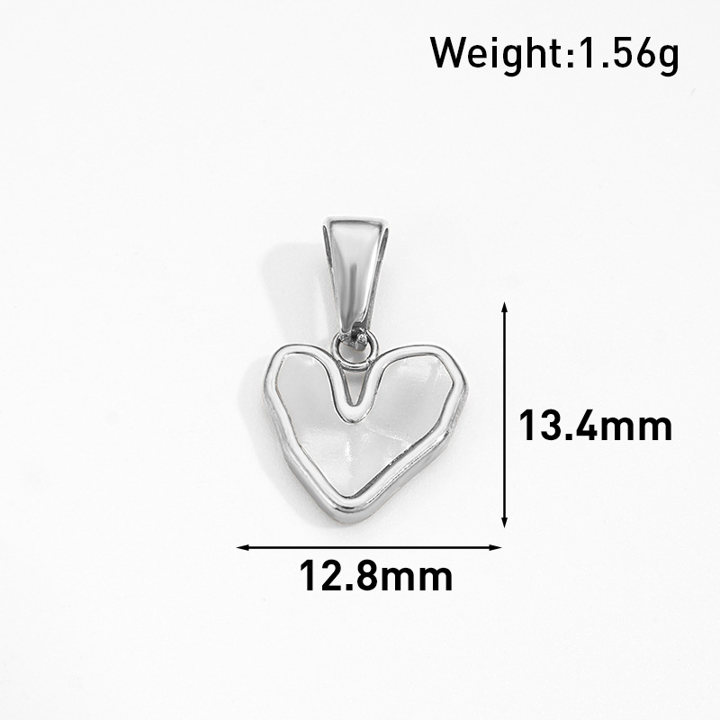 This heart shaped stainless steel pendant is based on stainless steel with a gold plated surface. Diamonds are inlaid on the edge of the heart shaped pendant, and the center is made of mother of pearl. Combining luxurious diamonds, warm mother of pearl and metal texture, the design is exquisite and romantic, and it is a jewelry that combines fashion sense and emotional meaning.